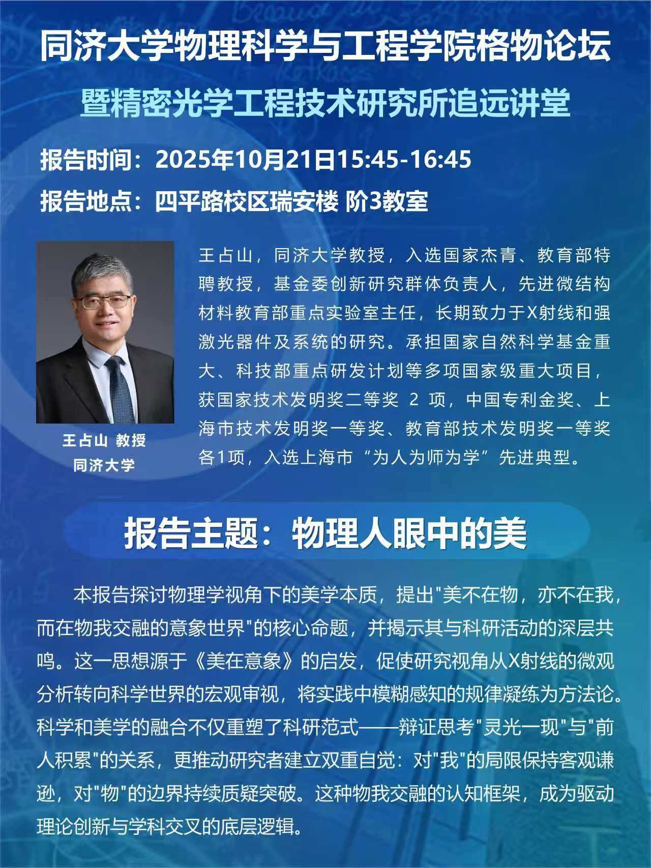 10月15日,同济大学2024-2025学年本科招生总结会在四平路校区举行。校党委书记、中国工程院院士郑庆华出席会议并讲话,校党委常务副书记朱小杰主持会议,常务副校长吕培明、副校长许学军等校领导出席。会议对在本学年本科招生工作中表现突出的先进集体和先进个人进行了表彰。物理科学与工程学院承担的江苏省招生工作组荣获“招生先进集体”,张建卫副院长荣获“招生突出贡献奖”,樊维佳和张增海两位教师荣获“招生先进个人”共...