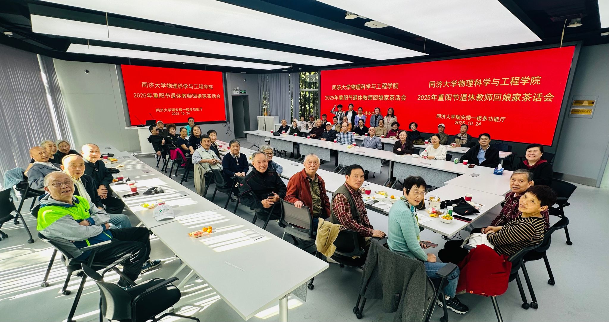 岁岁重阳,今又重阳。为传承尊老、敬老、爱老的优良传统,凝聚学院退休教师的情感力量,10 月 24 日下午,物理科学与工程学院在同济大学四平路校区温馨举办退休教师 “回娘家” 茶话会。本次活动由学院工会精心组织,50 多位退休老同志满怀热忱重返校园,共赴这场充满温情的相聚。学院党委副书记、纪委书记谢双媛教授,教研室副主任许静平教授、樊维佳副教授,实验中心副主任方恺教授级高工等领导与工会委员陪同参加,茶话会由...