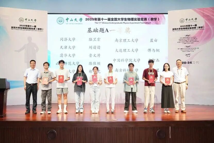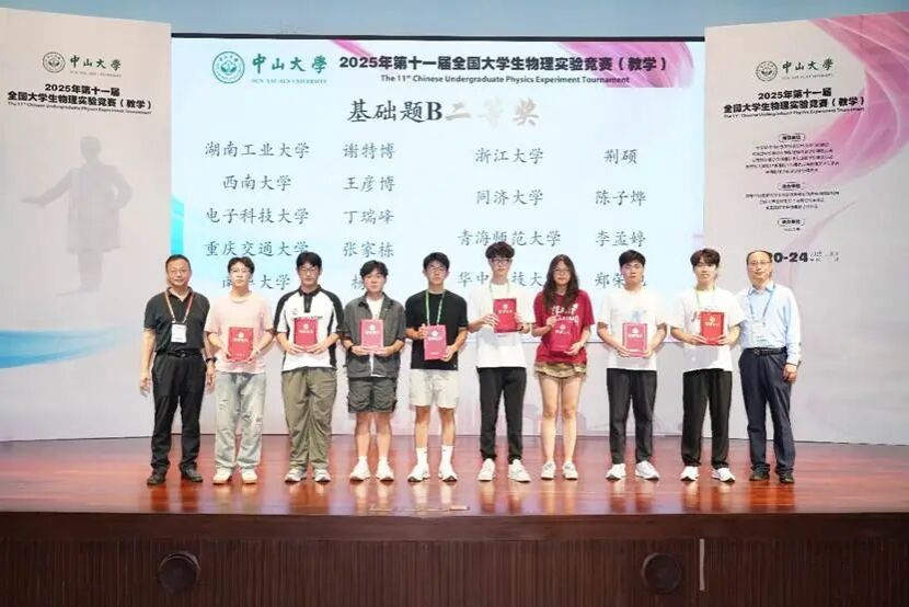 7月20日至24日,第十一届全国大学生物理实验竞赛(教学)在中山大学广州校区和珠海校区举办。国家级物理实验教学示范中心、教育部物理学基础学科拔尖学生培养计划2.0基地、国家理科基础科学研究和教学人才培养基地物理学专业点、国家工科基础课程物理教学基地所属高校及第九届、第十届全国大学生物理实验竞赛(创新)获奖高校共120所高校参加竞赛,参赛学生400余人。同济大学参赛队伍由2023级本科生陆昱霏、陈子烨及2022级本科生李乐暄、王筱涵4名学生组成,蒋涵文老师担任领队。经过激烈角逐,同济大学代表队在广州赛区斩获一等奖1项、二等奖2项,全员获奖。同济大学荣获优秀组织奖。同时,陆昱霏以基础题A赛道第一的优异成绩荣获“最佳队员”称号,并作为最佳选手代表在闭幕式上发言。
