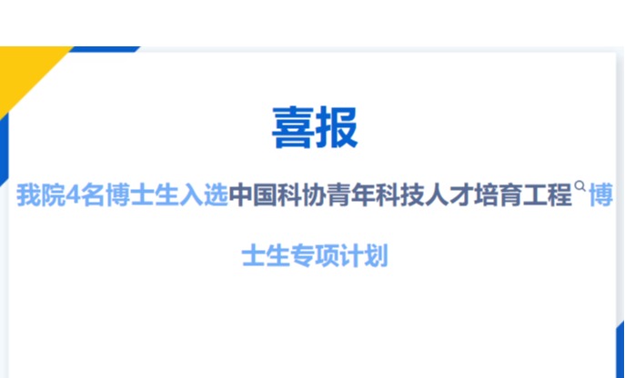 我院4名博士生入选中国科协青年科技人才培育工程博士生专项计划
